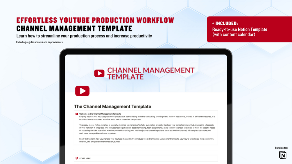 Streamline Your YouTube Production Process with the Time-Saving Channel Management Template in Notion
