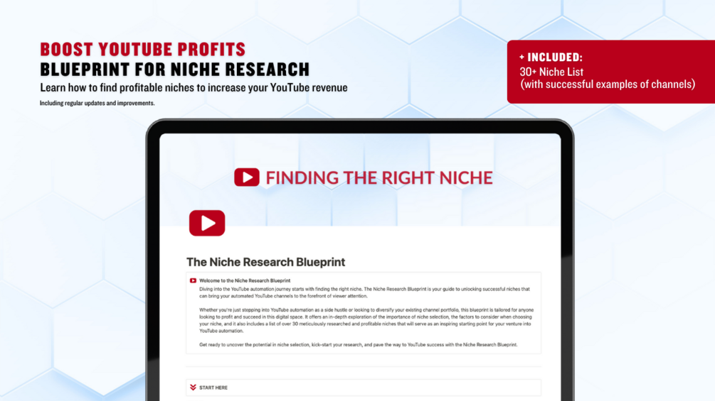 Discover the vital role of niche research, the power of high CPM niches, and make a well-informed selection that will maximize your channel's profitability. Kickstart your niche research with the carefully curated list of more than 30 examples of successful channels. This blueprint will provide you with the tools you need to boost your profits by finding the right niches.